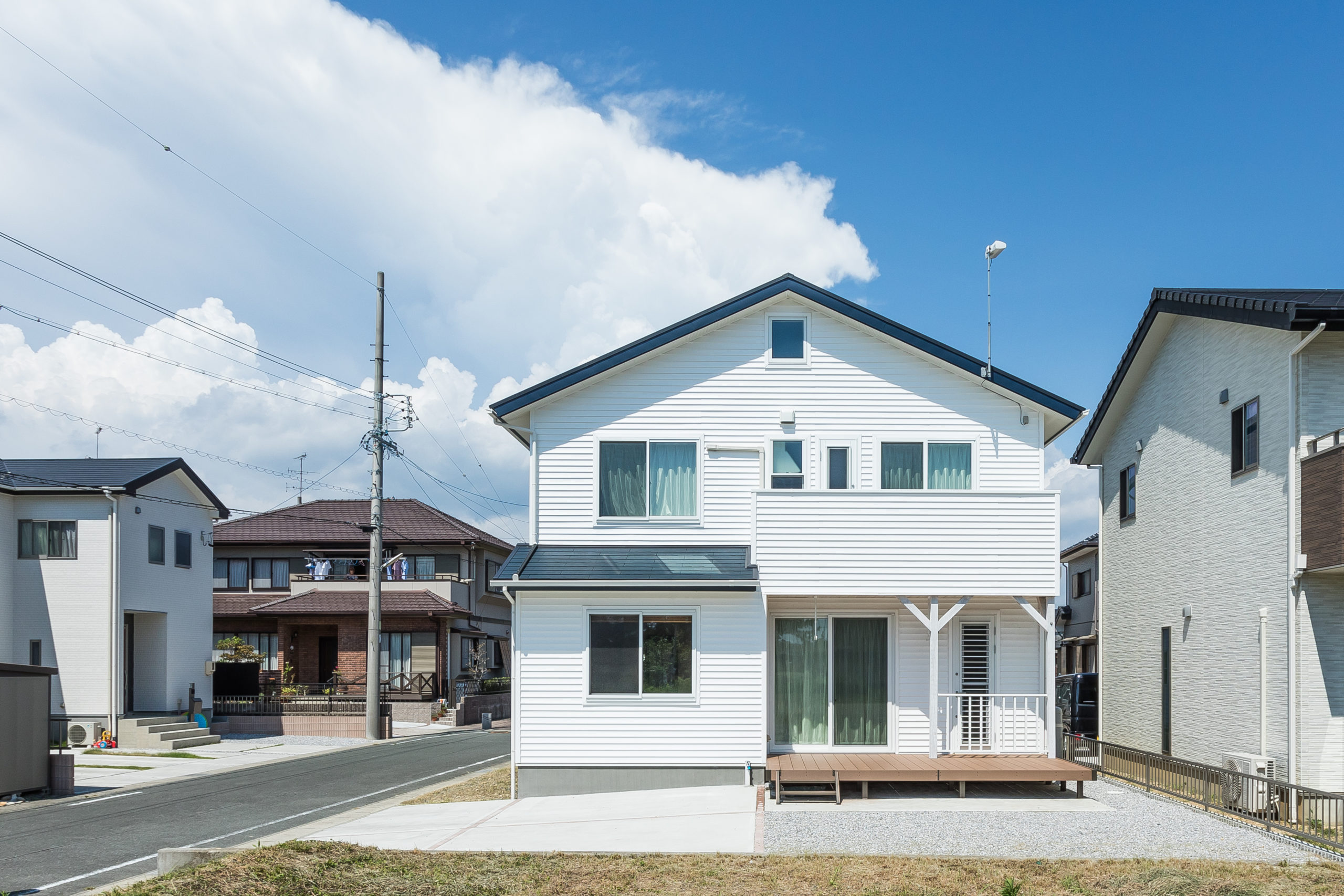 外部にはウッドデッキを設置してリビングから一体的にお使いいただけるスタイルを採用しました。