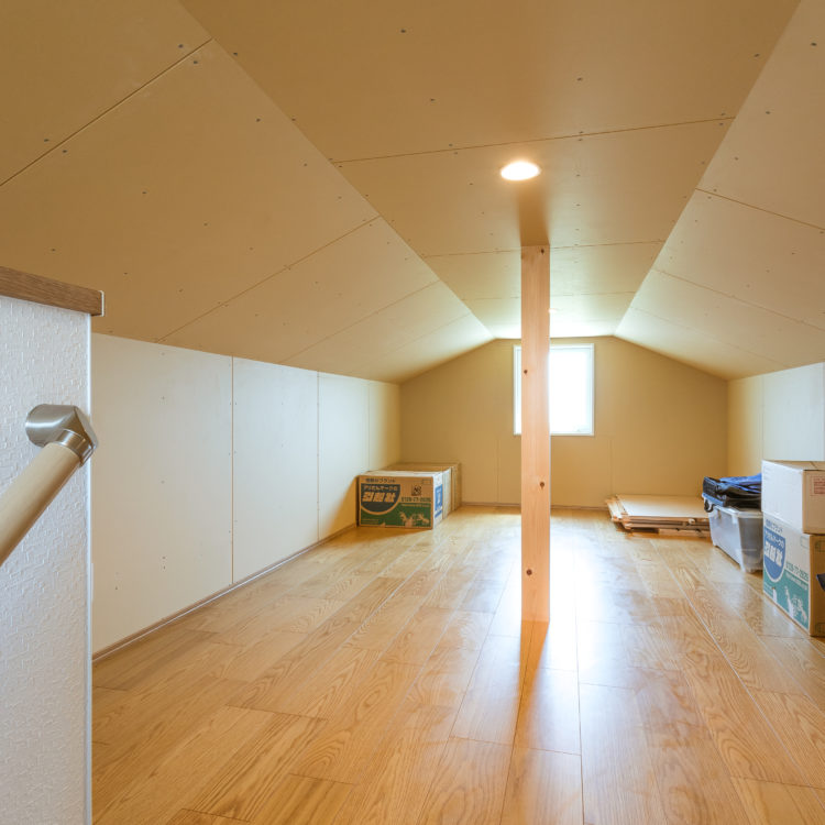 屋根裏のデッドスペースを活用した「小屋裏収納」は収納容量を飛躍的に高めますので当社ではよくご提案させていただきます。