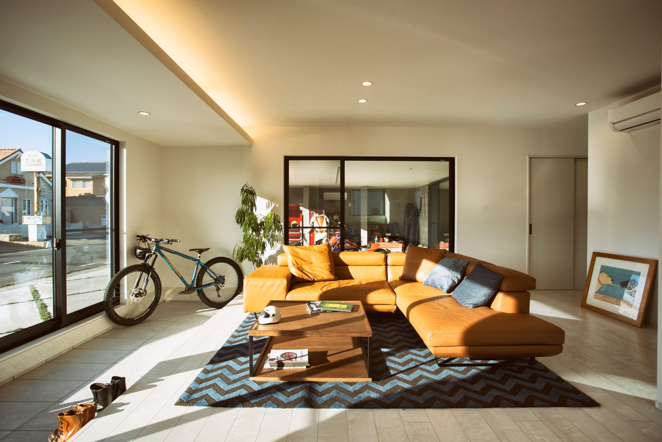 また、リビングからはガレージの様子がよく見え、愛車を眺めながらくつろぐ時間も至福のひとときです。